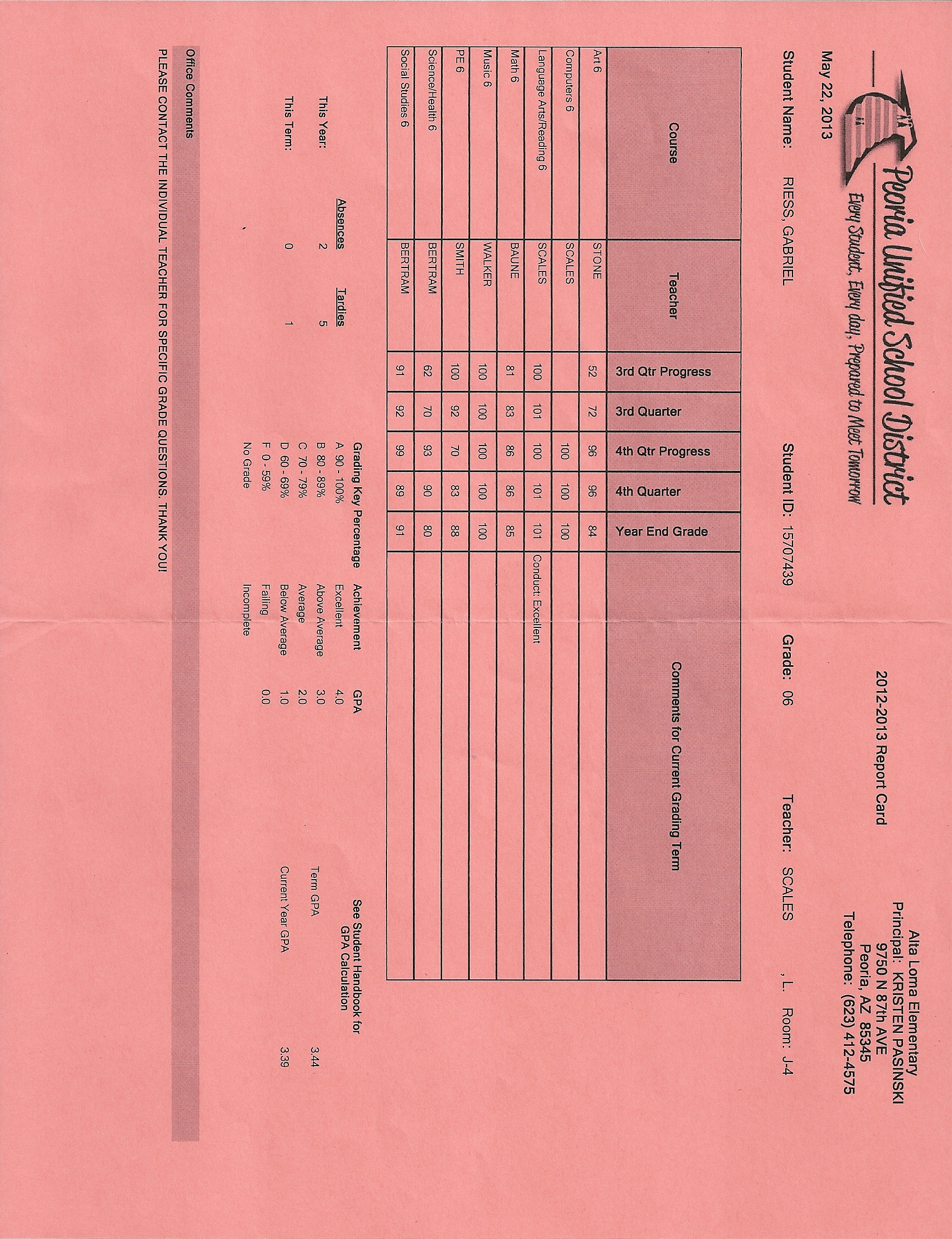 Don't bother, I'll email you a copy of his last report card which will show his grades and teacher notes for the last 2 quarters he was in Alta Loma. I just forwarded you his most recent IEP. There isn't anything else to send.